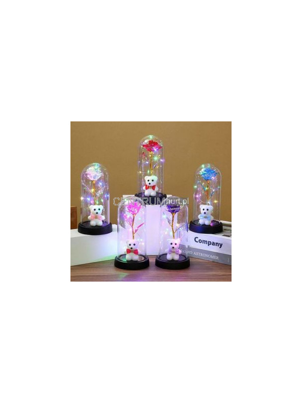 MAŁA wieczna róża Z MISIEM LED 13920